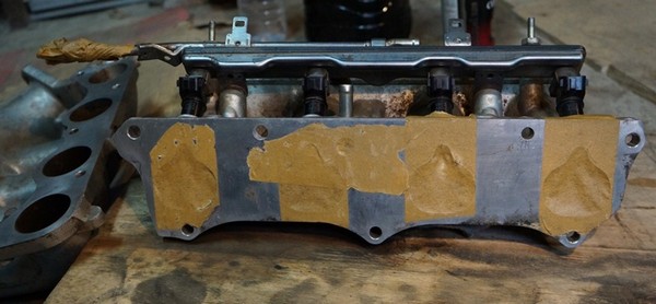 Отверстие во впускном коллекторе залепил холодной сваркой и сверху залил эпоксидным клеем, ну чтобы наверняка, можно было его заварить аргоном, но такой сварки у меня не было под рукой.
